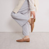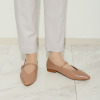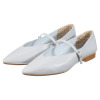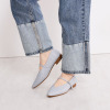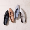 フラットなデザインながら、すっきりとしたトゥと華奢なストラップが女性らしさと上品さを演出。