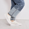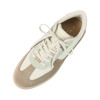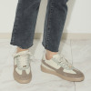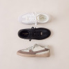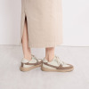 シューレースにほどこしたゴールドカラーのロゴパーツが輝き、当ブランドらしさを演出。