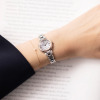 ケースからバンドへと繋がるやさしいラインと、花びらのような軽やかなバンドが柔らかな印象。