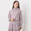 襟元に繊細なタックをほどこし、すっきりと立ち上がる美しいシルエットを形成。