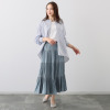 3段目の切り替え部分には約1cm間隔でステッチをほどこし、美しいシャーリングを形成しました。
