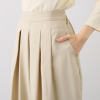 ウエスト後部はゴムシャーリングを入れ、左脇にファスナーを配置することで、快適な着用感と美しいシルエットの両立を実現しました。