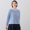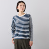 度詰め天竺の特徴である、整った編み目がボーダー柄をくっきりと見せ、耐久性も高めています。