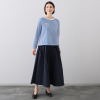 脇の切り替え線を前身頃側に寄せることで、細見え効果を狙いました。