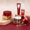 <エルツティン>より、独自の美容成分を厳選配合しハリのある艶やかなお肌へ導く大人女性のためのオールインワンクリーム30ml×2と、10mlサイズ、ハリツヤエイジングケア(年齢に応じたお手入れ)ミスト状美容液・10mlサイズのセットです。