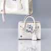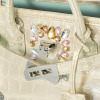 カットとカラーが異なるスワロフスキー(R)・クリスタルを計26個、職人が針と糸でソーイングしたデザインです。