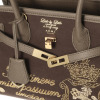 ビーズ刺しゅうと振り刺しゅうを駆使して仕上げたマーキスの紋章と、ラテン語で立体的にあしらった“千里の道も一歩から”というメッセージも目を惹きます。