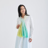 幾何学模様とカラーグラデーションが美しく織り込まれ、装いに華やかさと深みをプラスします。