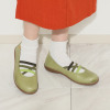 アッパーに平ゴムを組み合わせて配し、甲が高い方でも圧迫感が少なく着脱もしやすいデザインに仕上げました。