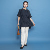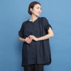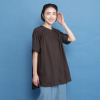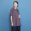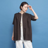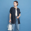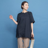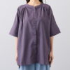 襟は細幅で真ん中に飾りステッチをほどこしたおしゃれなバンドカラー。