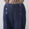 ウエストは両脇から後部にかけてゴムギャザーを配した窮屈に感じにくいつくり。