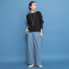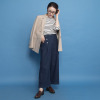 ワイドシルエットでありながら、前身左右のタックデザインにより縦のラインを強調。