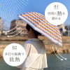 内側に用いた黒生地にはウレタンコーティングをほどこしており、遮光率99.99%(1級遮光)、UPF50+、紫外線遮蔽率99.9%以上のUVカット率を実現。