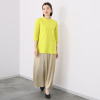 Vネック風の変形ハイネックが首周りをすっきりと演出しつつ、日除けにも。