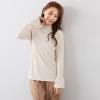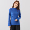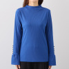 まだ肌寒い時期ですが、ジレに合わせた春めいた服が欲しい、かと言って首の開いてないものはないかと探していて見つけたのがこちらでした。生地は滑りの良い素材で伸びもあり体の線を拾いませんでした。気になる二の腕もスッキリ見えます。シンプルなジレの下に着ても、袖のアクセントのボタンがオシャレにみせてくれます。梅春の季節に重宝しそうです。