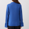 袖口にはボリューム感のあるベルスリーブを採用し、ジャケットやアウターからちらりと見せることで、上品な印象を与えます。