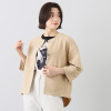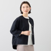 襟元のラウンドネックと3つのボタンがさりげないアクセントとなり、前を開けて着用した際も程良い個性を演出。