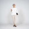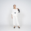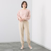 裾部分は同系色のリブ素材で切り替え、フロントにスリットを入れることでさりげなく肌が見え、女性らしい抜け感を演出します。