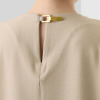 後ろネックラインにはスクエア型のゴールドカラーのバックルをあしらった涙開きを配し、抜け感と華やかさを感じられるバックスタイルに。