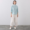 縦と横の糸をともに50番手以上の単糸を用いた、薄手で柔らか、自然な光沢感があるコットンローン(平織り生地)を使用しました。