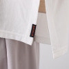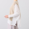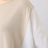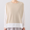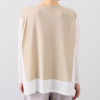 両脇と裾を配色生地で囲い、視覚的にウエスト周りが引き締まった印象を与えることで、袖をまくるだけでこなれ感と華奢見えの相乗効果が得られます。