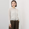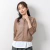 ネックラインから前立てにかけてと袖の編地は度を詰めてダレにくく仕上げ、裾のリブ幅を抑えることで、もたつきにくいすっきりとしたシルエットを実現しました。