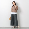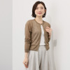普段スカートが多いので、短め丈のカーディガンは重宝します。ワンピースに羽織っても軽やかで、ちょうどいい丈です。