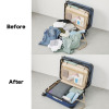 掃除機を使用せず、ファスナーを閉めるだけの簡単圧縮で、旅行バッグにコンパクトに収納できます。
