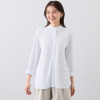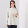 バンドカラーにコンパクトなフリルを添えることで、上品さと女性らしさを演出。