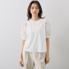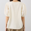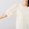 袖のコード刺しゅうレースが華やかさを演出。カジュアルからきれいめまで、幅広くシーンで活躍します。