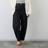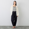 旬なカーブパンツを当ブランドらしくフィット感と美脚ラインで表現。ワイドなのに軽いはき心地も魅力的。