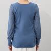 前身頃のサイドにギャザー、袖にレースをほどこしたデザイン。