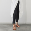 シルエットは、ウエスト、ヒップ、モモ、ヒザまではレギンス感覚にフィットし、ヒザから裾にかけてはスティックパンツに見えるように通常のレギンスより裾幅を広げています。