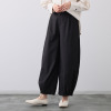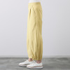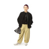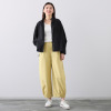 裾の脇には平ゴムを通してギャザーを寄せてふんわりとしたバルーンシルエットを作り、やさしい雰囲気をプラス。