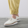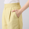 フロントファスナー開きとタックデザインで、お腹回りをすっきりと見せつつ、ウエスト後ろはゴム仕様で快適なはき心地を実現。