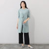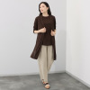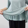 (チュニック)身頃は、肌当たりの良い、微光沢を持つレーヨン混天竺素材の裏地付きで透け感を軽減しつつ、袖部分は素材本来の透け感を楽しめるつくりに。