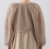 届いてみると、テレビで見ているより素敵でノースリーブのワンピースの上にサッと羽織るだけで、ワンランクアップしたお出かけ着に変身します。袖口にゴムが入っているので、ボリュームも調整できて、いいですよ。