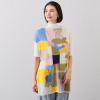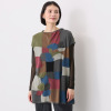 大胆に切り替えられたモザイク柄の中に浮かび上がる花々が目を惹きつけます。