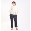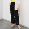 クレープ素材に全体的にスクエア刺しゅうをほどこした、ストレートパンツです。