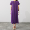 フロントネックラインに細かくギャザーを取ることで中央にドレープが生まれ、気になるお腹周りをさりげなくカバー。