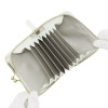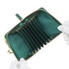 前面にがま口式小銭入れ、後面は大きく開くラウンドファスナー仕様のカード&お札入れを組み合わせた独創的なデザインが特徴です。
