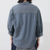 シャンブレー生地を使用した、スタンドカラーの七分袖ブラウスです。