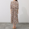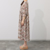 マダムミーナ 小花柄プリント サイドリボンアクセント ギャザー フレアーワンピース