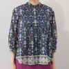 シルクロードクラブ ゴルダニ柄 ドロップショルダー スタンドカラーブラウス