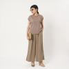 エレガントさと快適さを兼ね備えた、Tシャツのような感覚で着られる1着。ゆったりとした着心地が魅力。