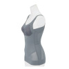 襟ぐり裏(ストラップ含む)には接触冷感・速乾性のある日本製パワーネットを付け、デコルテラインがきれいに見えるよう工夫。
