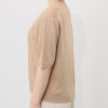 リネン糸にカラーマッチングしたメタル調の糸をハイゲージ(12ゲージ)で、ダブル編みに仕上げた薄くて軽やかな一着。