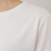 Tシャツは程良い開きのボートネックで、裾のカーブがさりげなくおしゃれ。