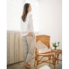 コットン98%のダブルガーゼ素材を使用したパンツと、コットン100%の長袖Tシャツのセットです。
