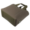 伸縮性のあるポリウレタンフォームに色の異なるナイロン素材を貼り合わせて1枚に仕上げた、ウェットスーツの素材のような質感が特徴です。